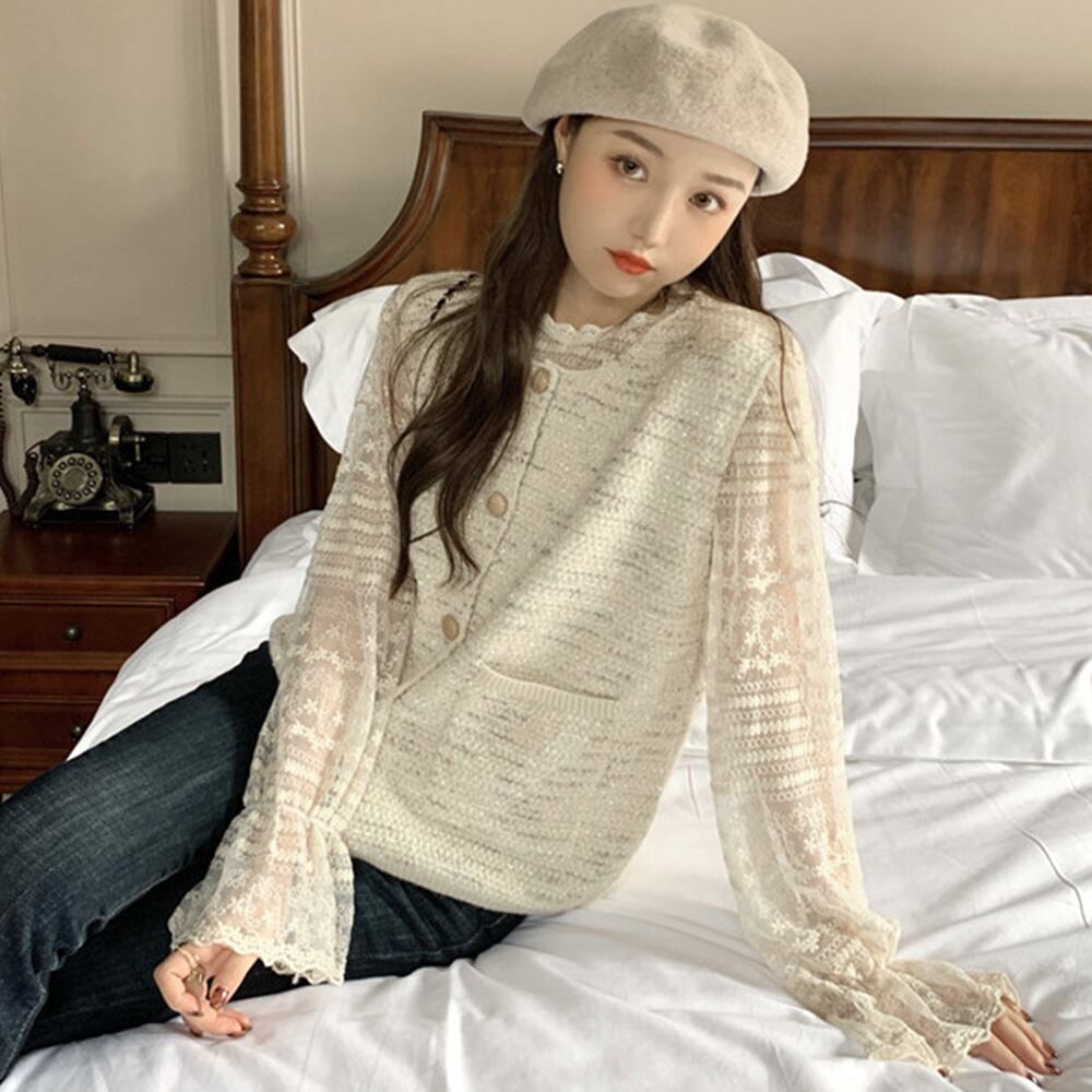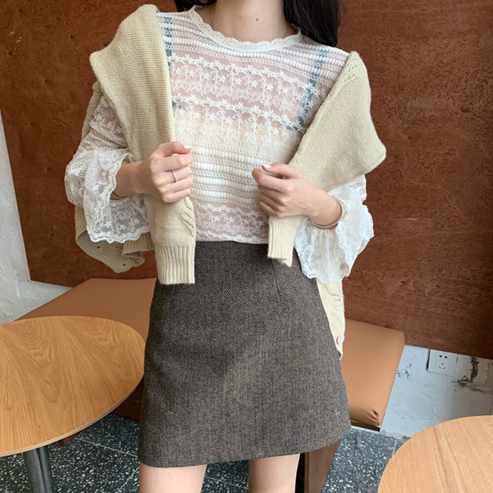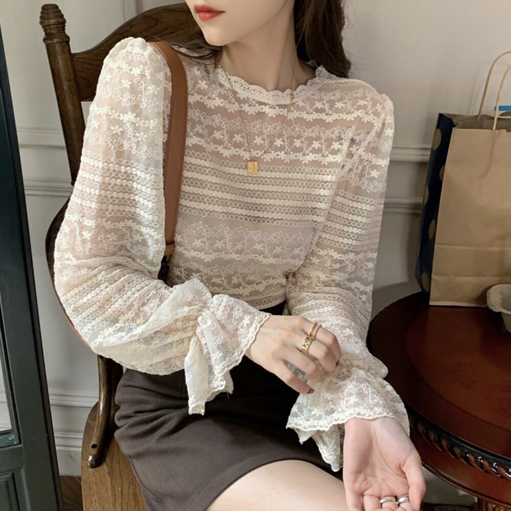 レースシャツ 春秋 シアーブラウス長袖 カットソーセクシー
