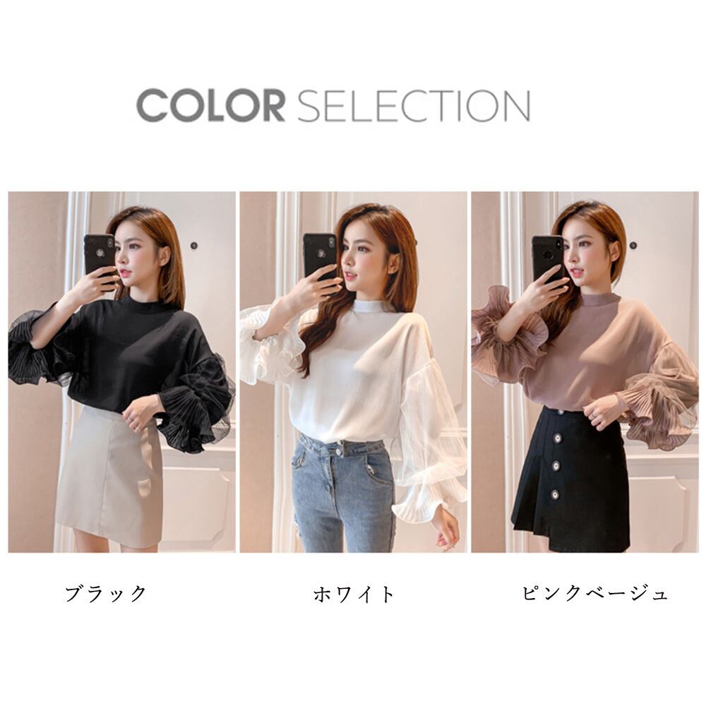 シフォンブラウス チューブトップ付き レディース フレアスリーブ 長袖ブラウス