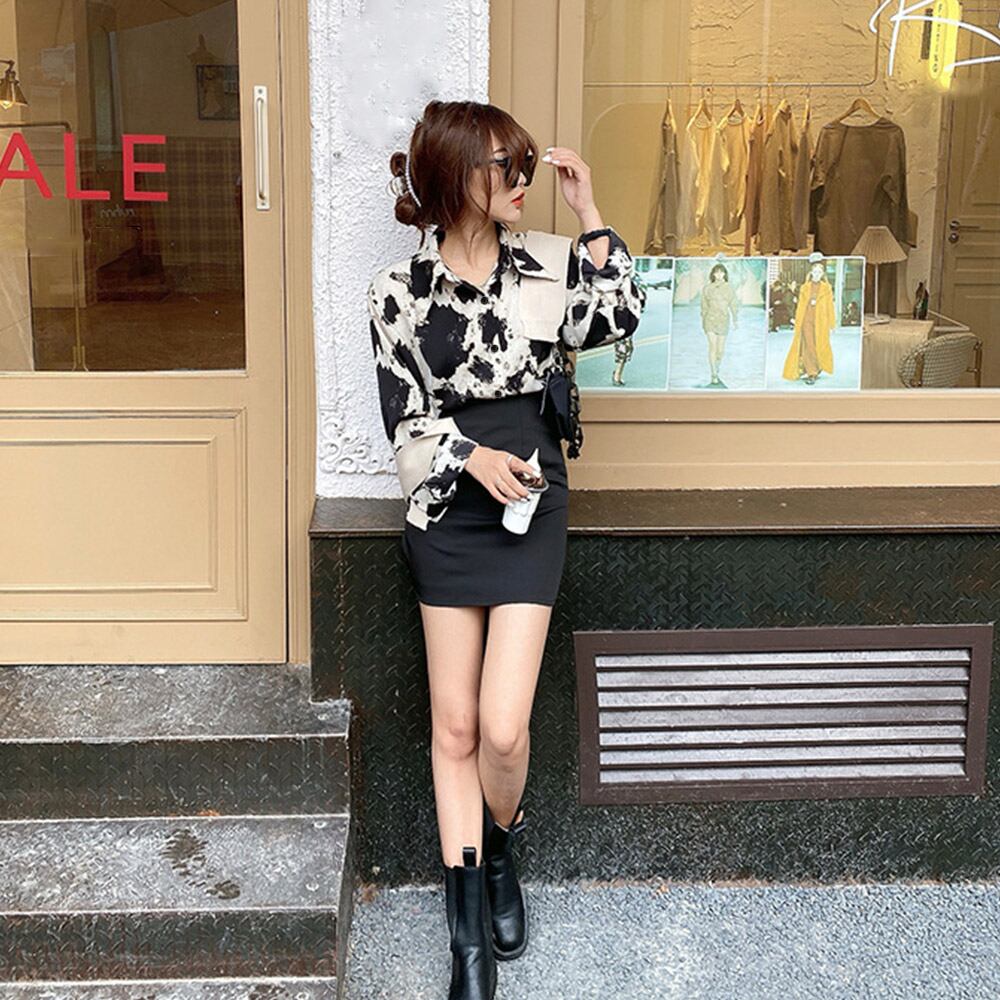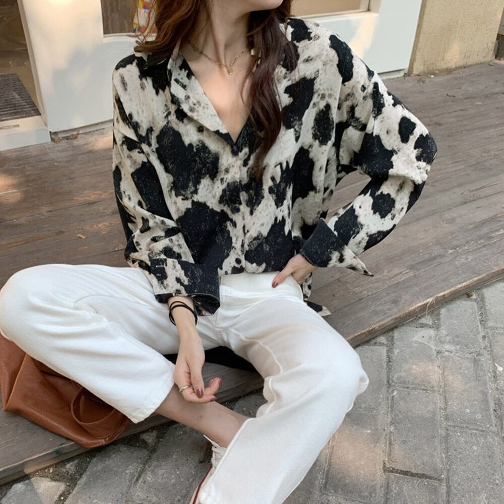 長袖 シャツ レディース ウシ柄 ボタン vネック 2021春秋 新作