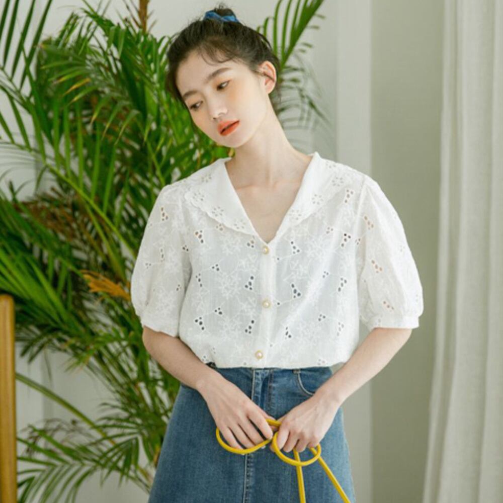 衿付きとレース生地で女性らしさが溢れるアイテム