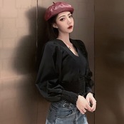 ウエストと袖部分にシャーリングデザインがスタイルお洒落さアップ♪