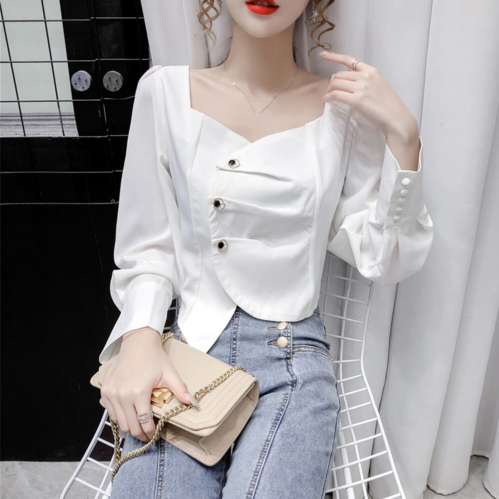 アシンメトリーデザイン シャツ ブラウス レディース 長袖 韓国ファッション