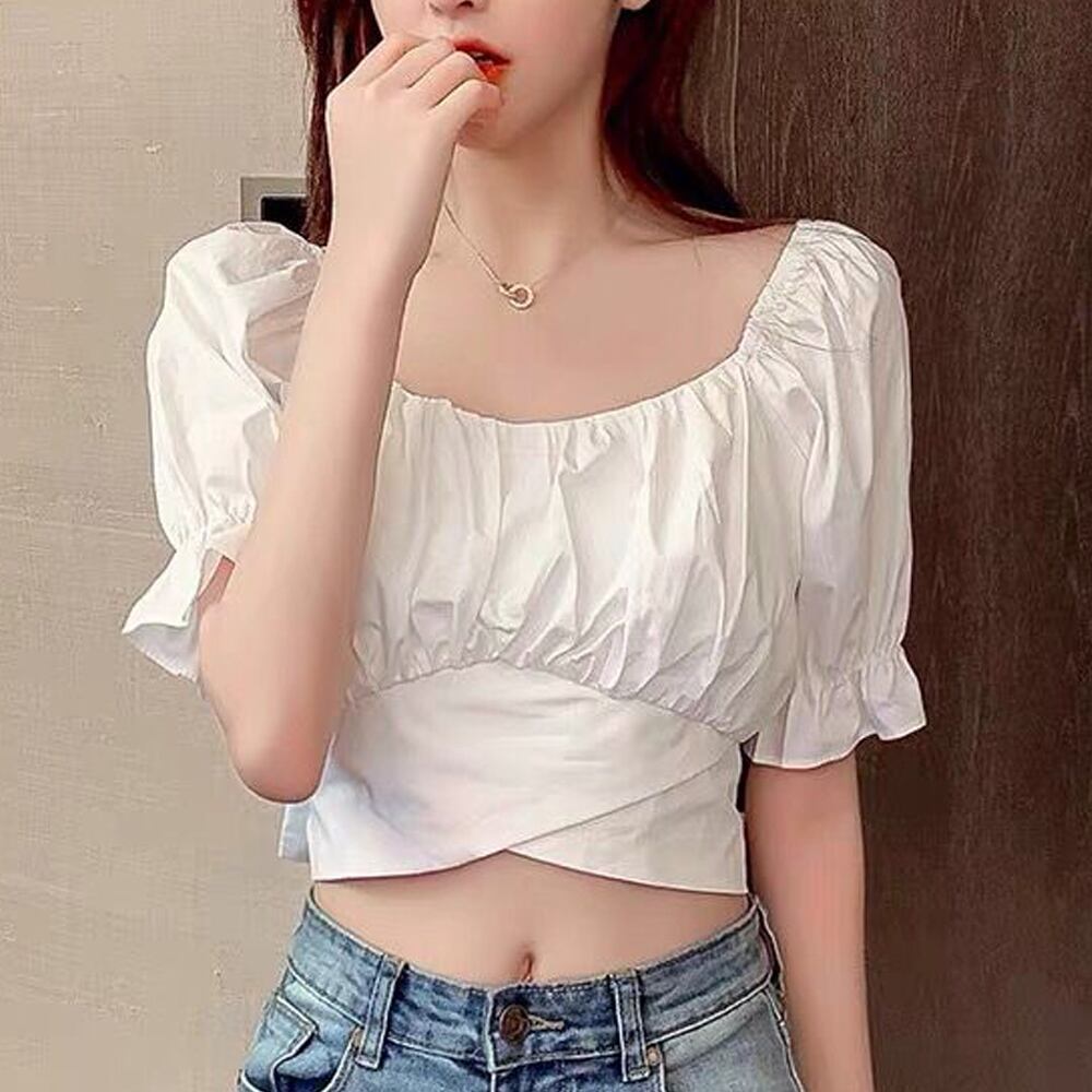 ブラウス へそ出し 無地 ショート丈 ブラウス セクシー シャツ トップス トップス きれいめ 半袖 ブラウス 鎖骨見せ シャツ