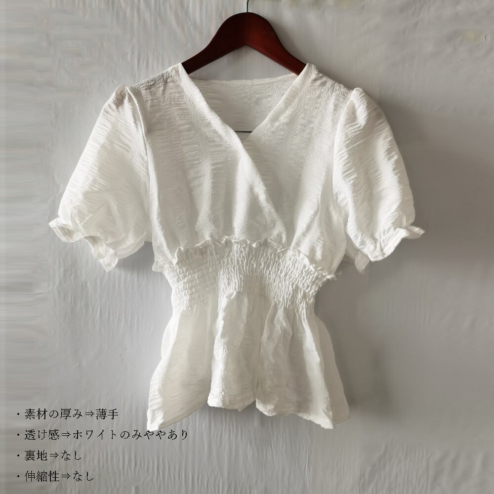 ペプラム ブラウス Vネック シャツ 半袖