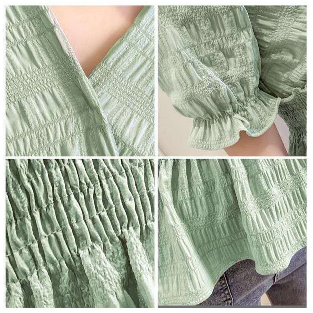 カシュクール風 トップス フリル袖 シャツブラウス きれいめ おしゃれ 薄手 Vネック シャツ 無地 ブラウス 着やせ トップス