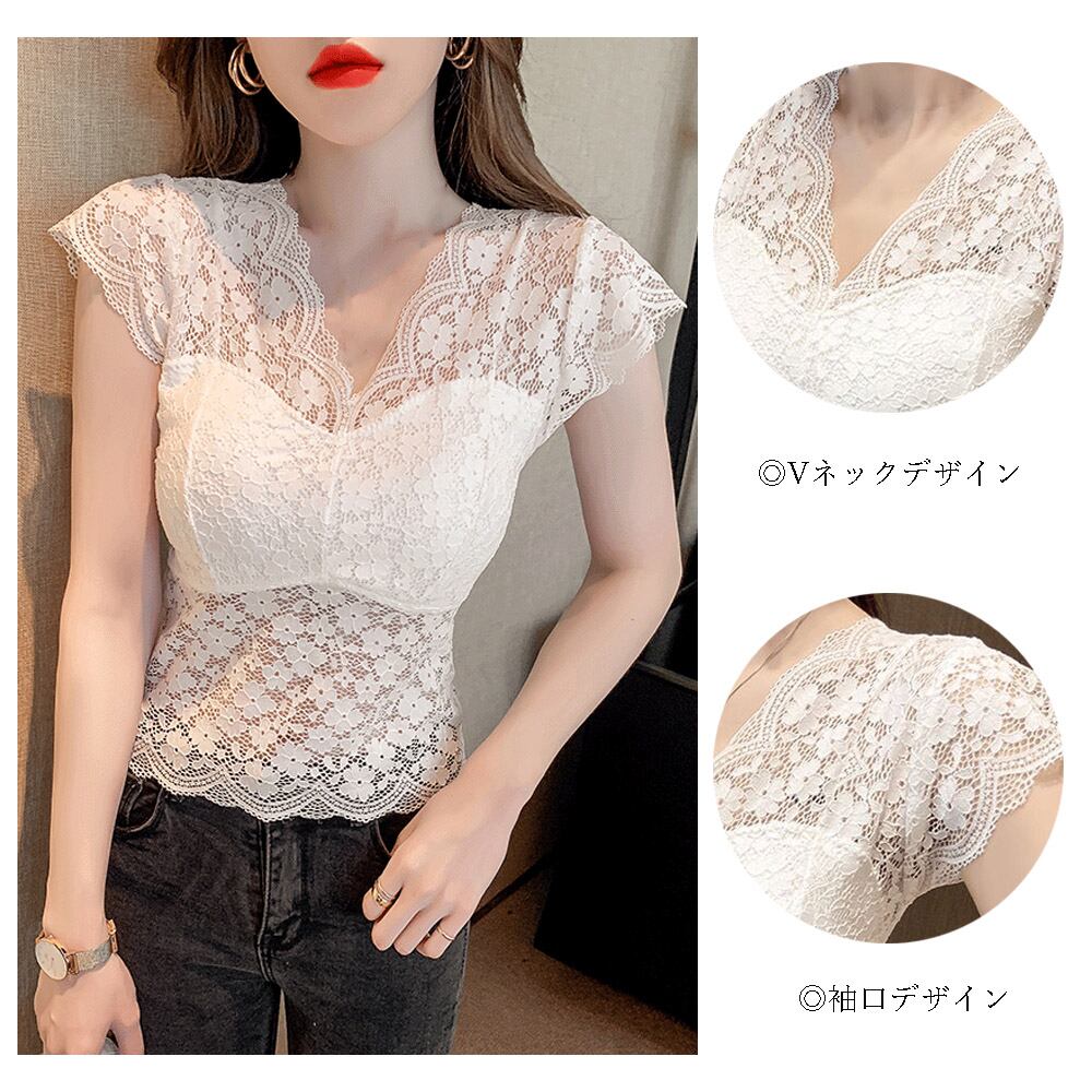 レーストップス 半袖 レディース シースルー ブラウス スカラップ 春夏 花柄 トップス レース トップス きれいめ トップス