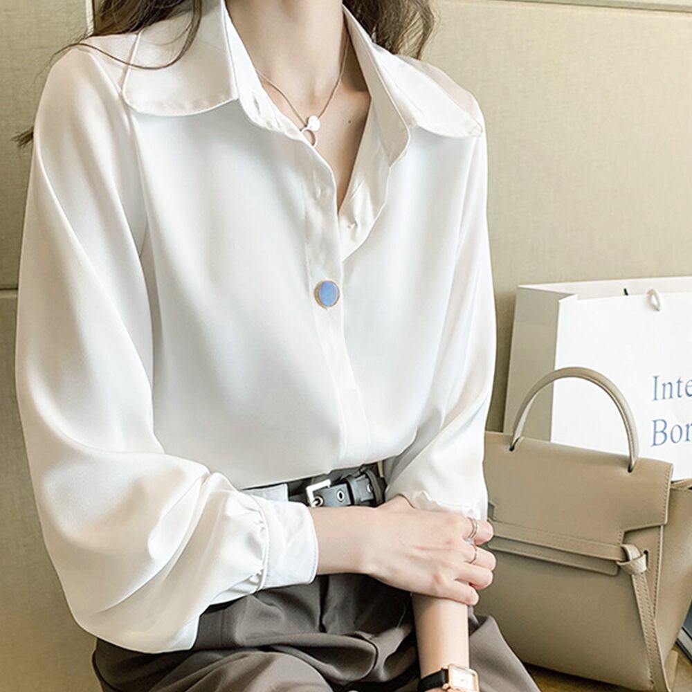 シャツブラウス オーバー ゆったり 長袖シャツ ワイシャツ オフィス シャツ 無地 体型カバー 通勤 重ね着 長袖