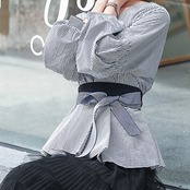 ベルト付きでウエストマークでおしゃれ、ブラウジングも楽しめるシャツブラウス