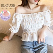オフショルダートップス 花柄 シャーリング