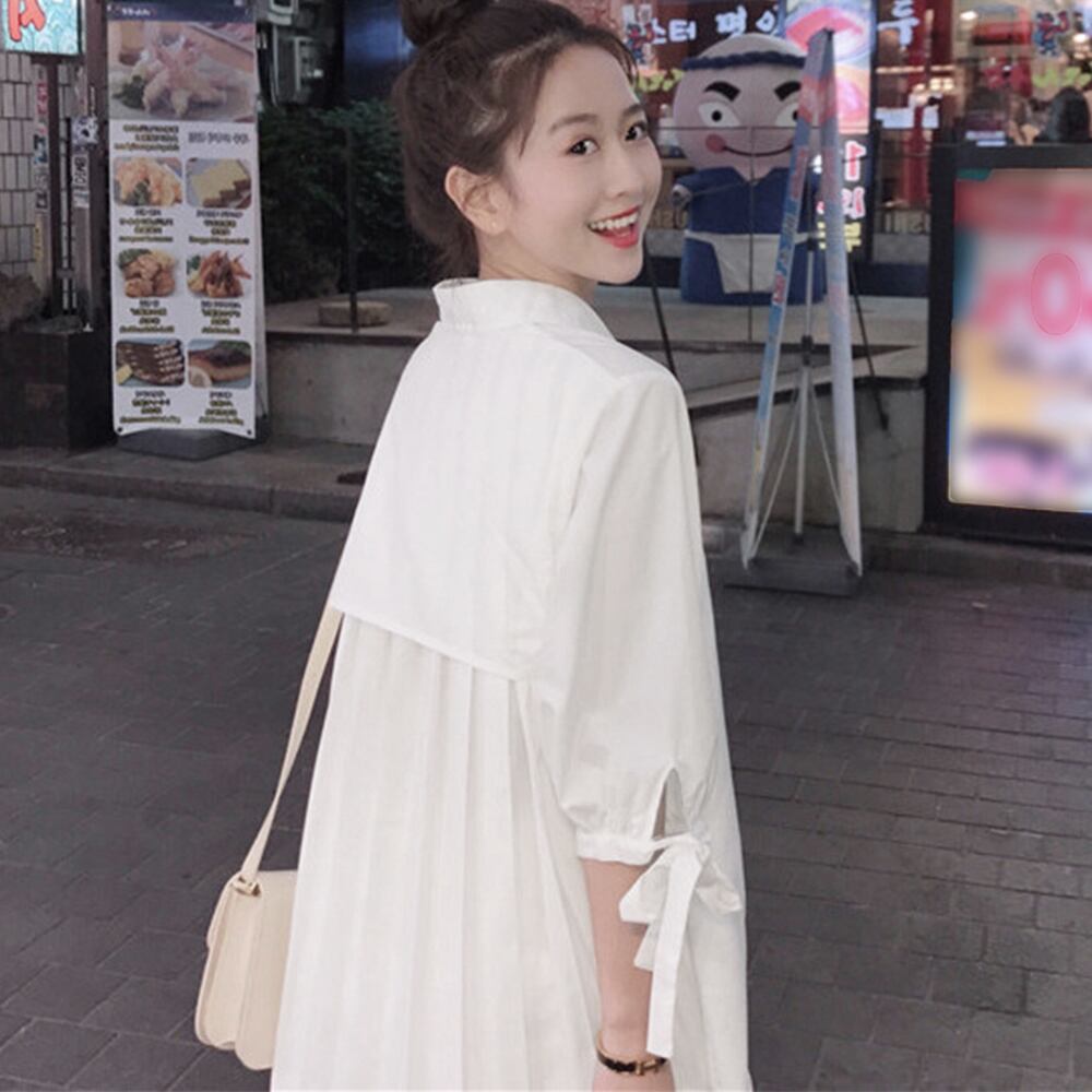 シャツワンピース 膝上丈ワンピース ゆったり 韓国風 大人 新品 ブラウス 白 半袖 おしゃれ ブラウスワンピース