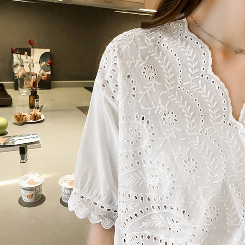 大人可愛いブラウス カジュアル ルーズ スカラ刺しゅう