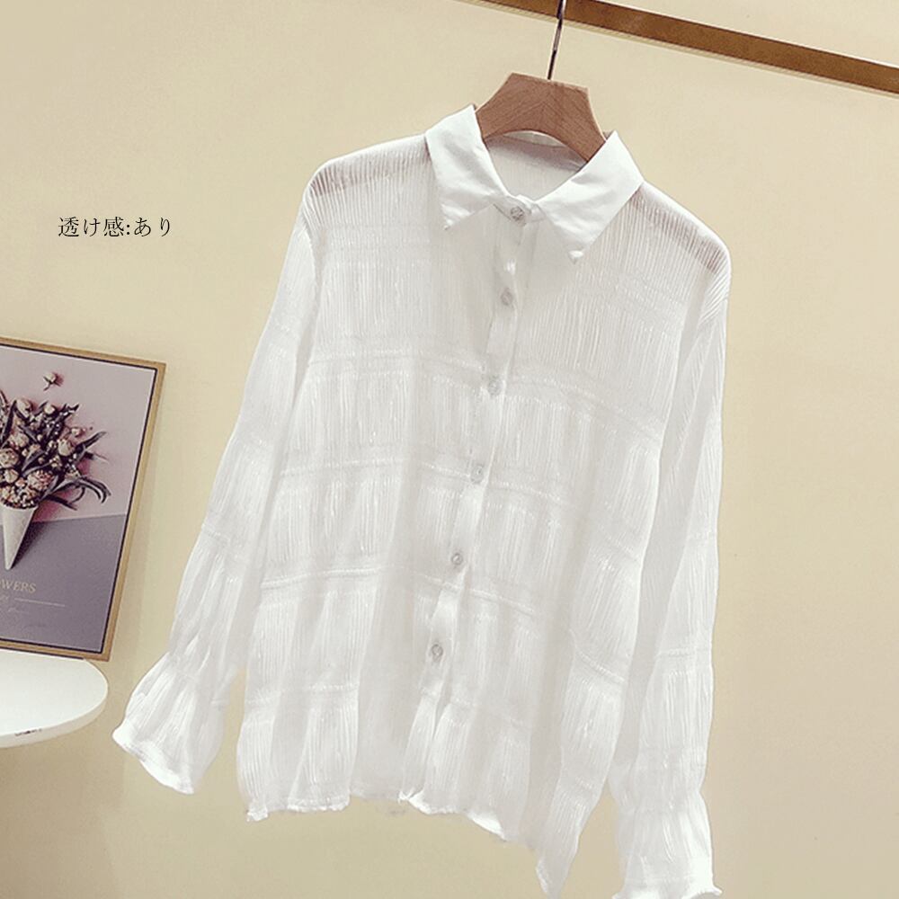 シャツ 透け感 フリル オシャレ 体型カバー 夏