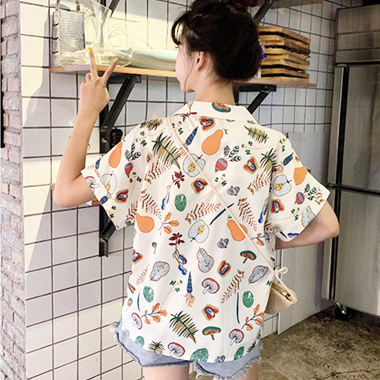 柄シャツ 半袖 トップス レディース オシャレ 可愛い サラリ 夏 薄手 前開きトップス カットソー