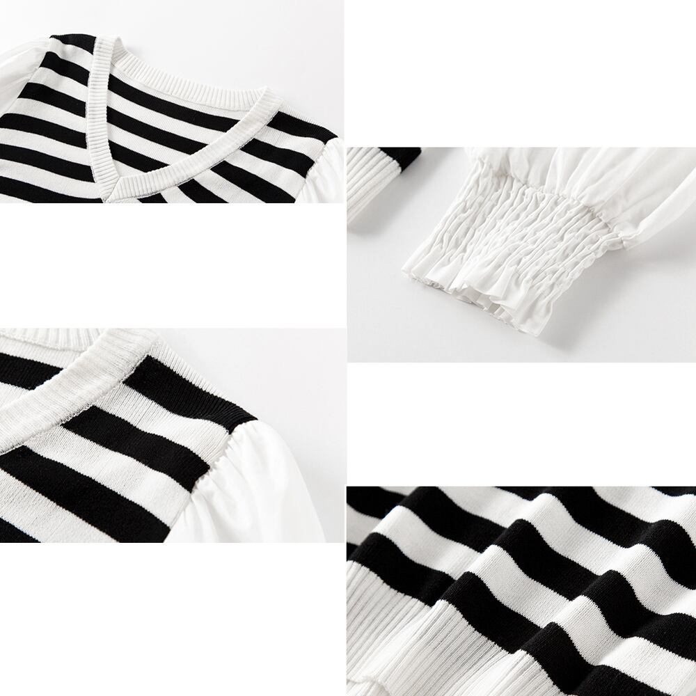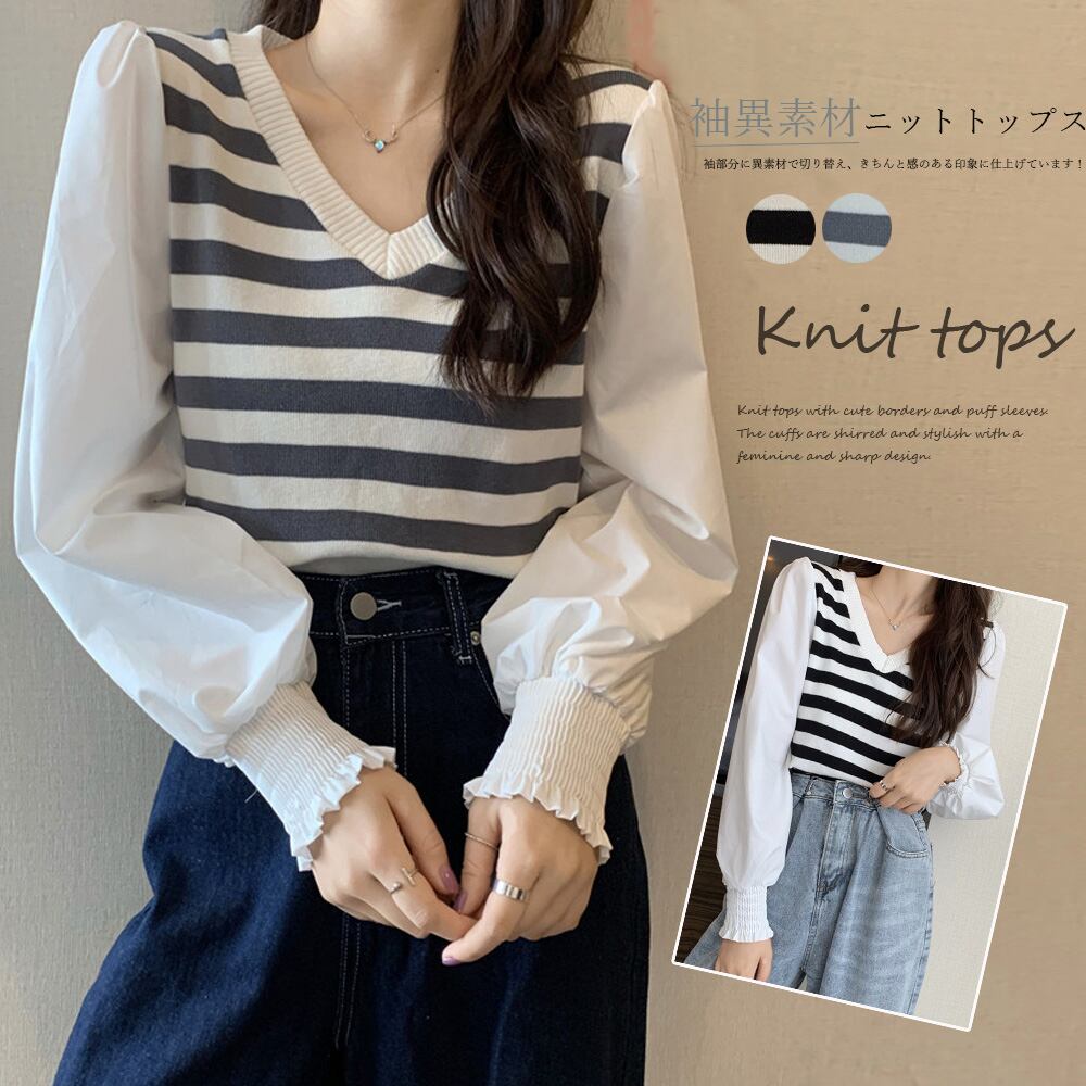 ボーダーとぽわんとしたパフスリーブが可愛いニットトップス