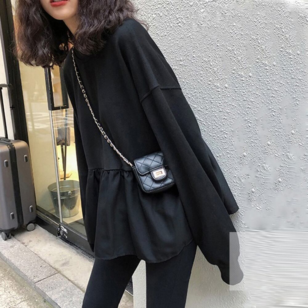 レディース ゆったり ドロップショルダー?カットソー 異素材切り替え 裾フレア Tシャツ 長袖 韓国ファッション秋冬