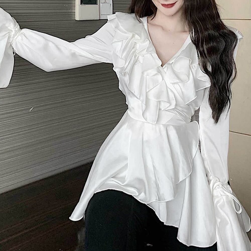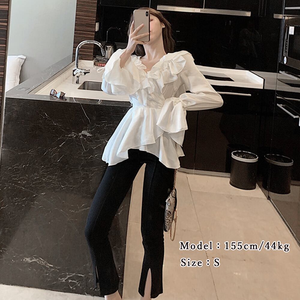 韓国 ブラウス フリル襟 長袖 きれいめ