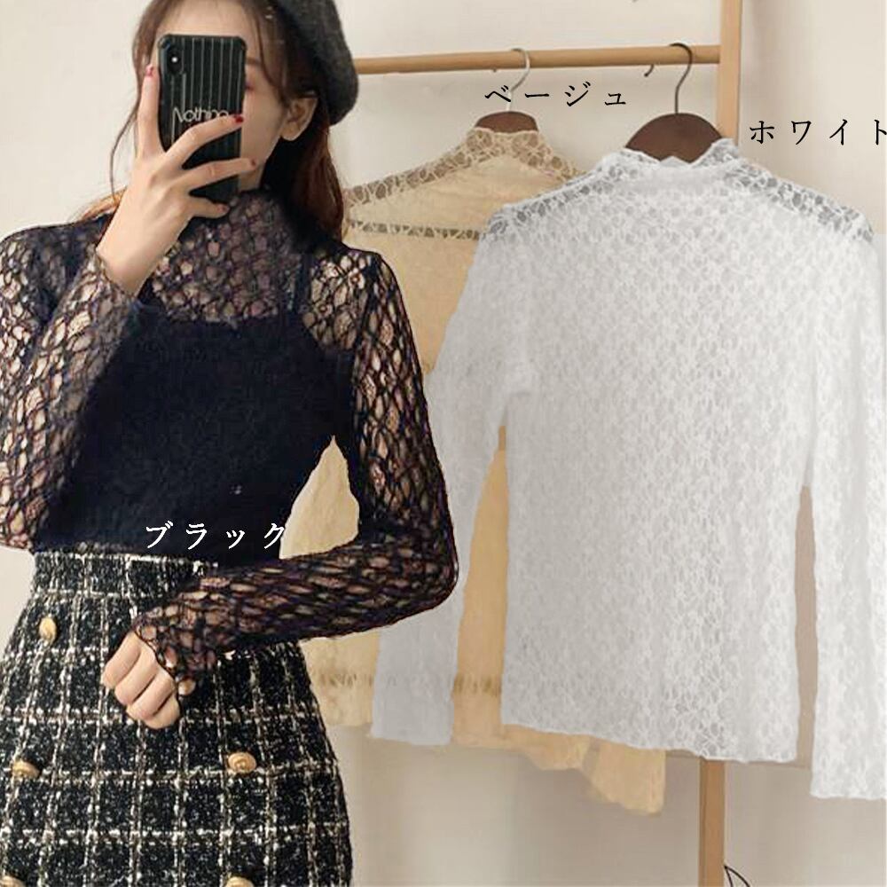 インナー レディース ハイネック シースルー シャツ 長袖 大人 シアーブラウス 春秋 オフィス 韓国風 きれいめ