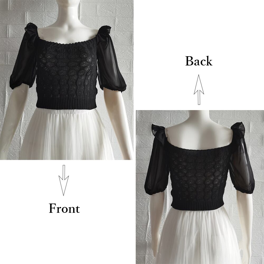 ドッキングシャツ 異素材ミックス パフスリーブ ニットブラウス 韓国風 ショート丈 ニットトップス 春夏 大人可愛い