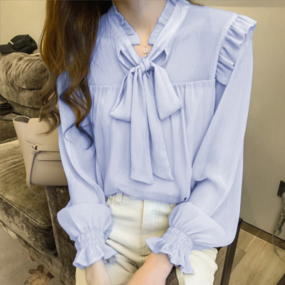 レディース長袖ブラウス 薄手オフィスカジュアル きれいめ ブラウス 韓国 フリル 着やせ透け感 通勤ブラウス ぽわん袖