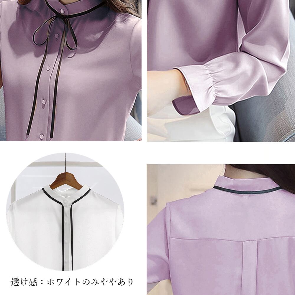 リボン ボウタイブラウス 長袖 とろみ無地 シフォンシャツ きれいめ トップス 春夏秋冬通勤通学 大人 立ち襟フォーマル