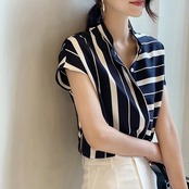 着やせシャツ 夏服 前開きトップス OL シャツ春夏