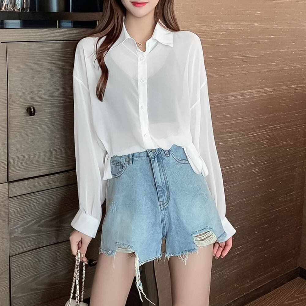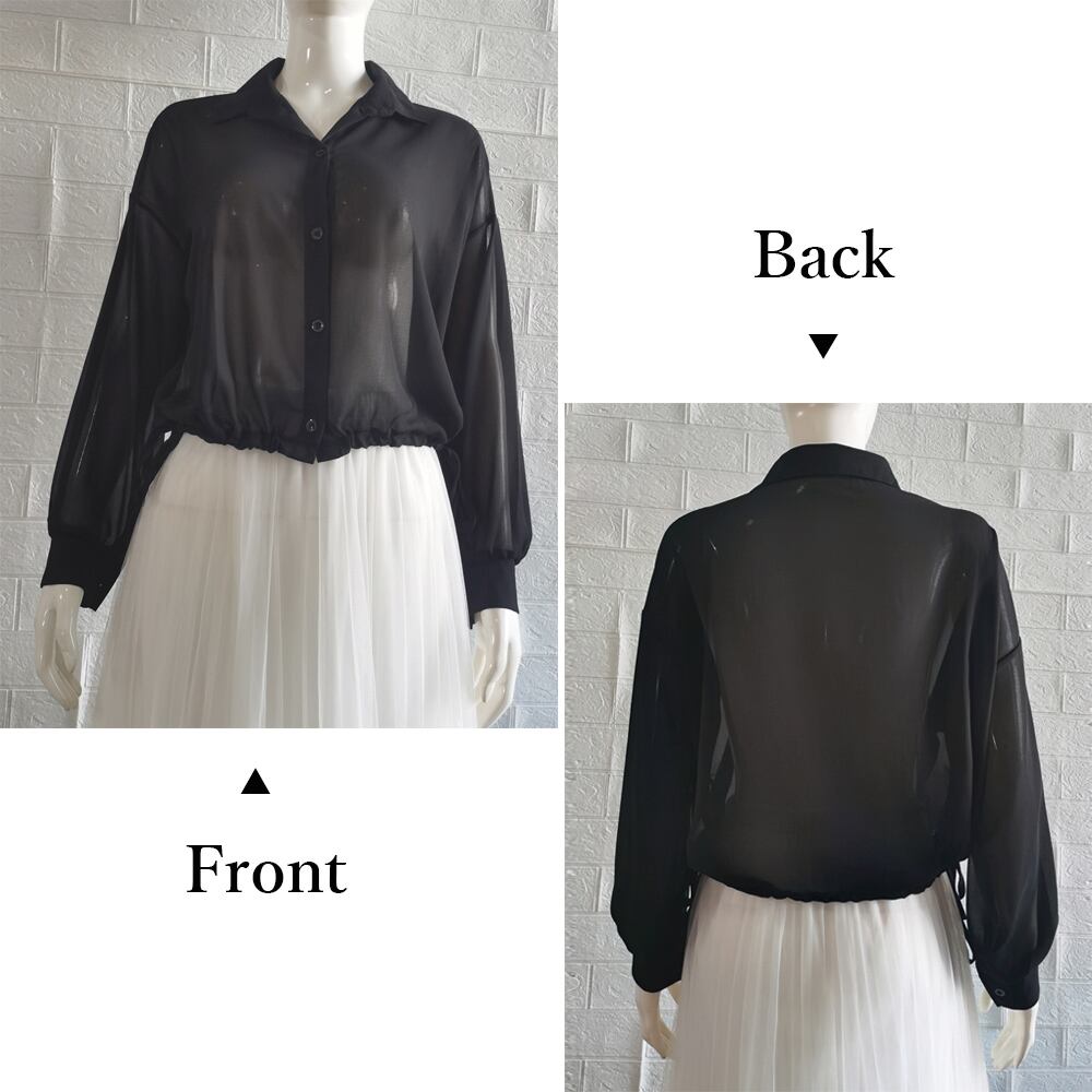 レディース 長袖 クロップド丈 シャツ 紫外線対策 ショート丈トップス 無地 日焼け対策 薄手ブラウス 透け感