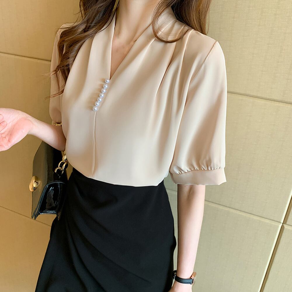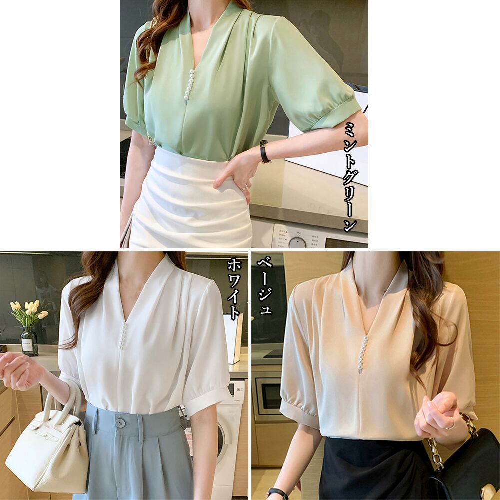 レディース きれいめ 半袖 上品ブラウス 大人女性 オフィスカジュアル トップス 韓国風 薄手 シャツブラウス 通勤無地