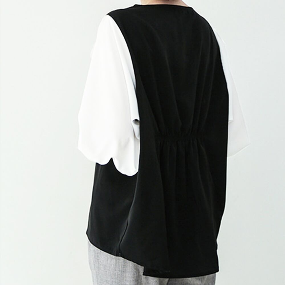 異素材切り替えとサラリとした肌触りのトップスです