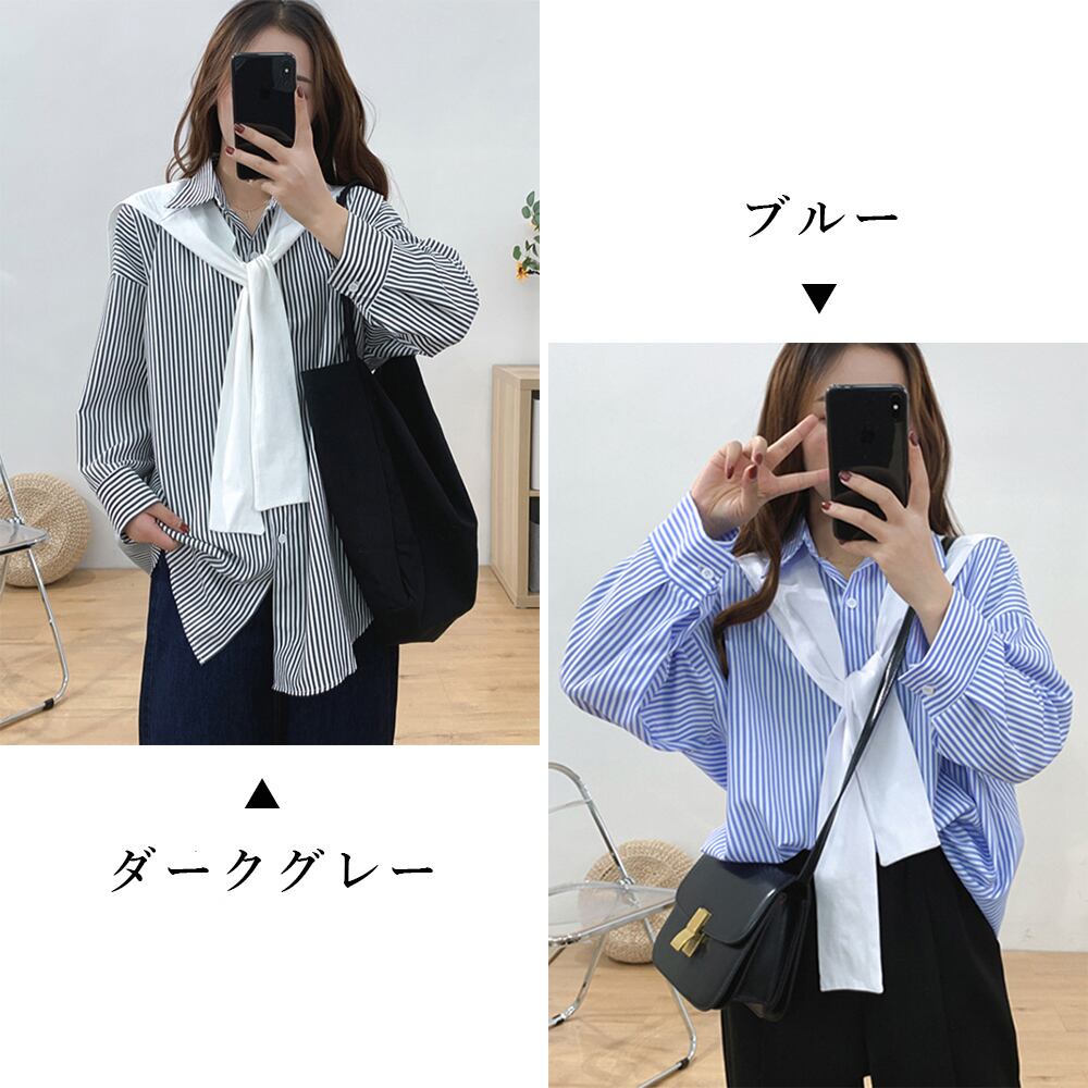 肩掛け風 2点セット 韓国風 チュニックシャツ オフィスカジュアル ブラウス 着やせ おしゃれ トップス 体型カバー
