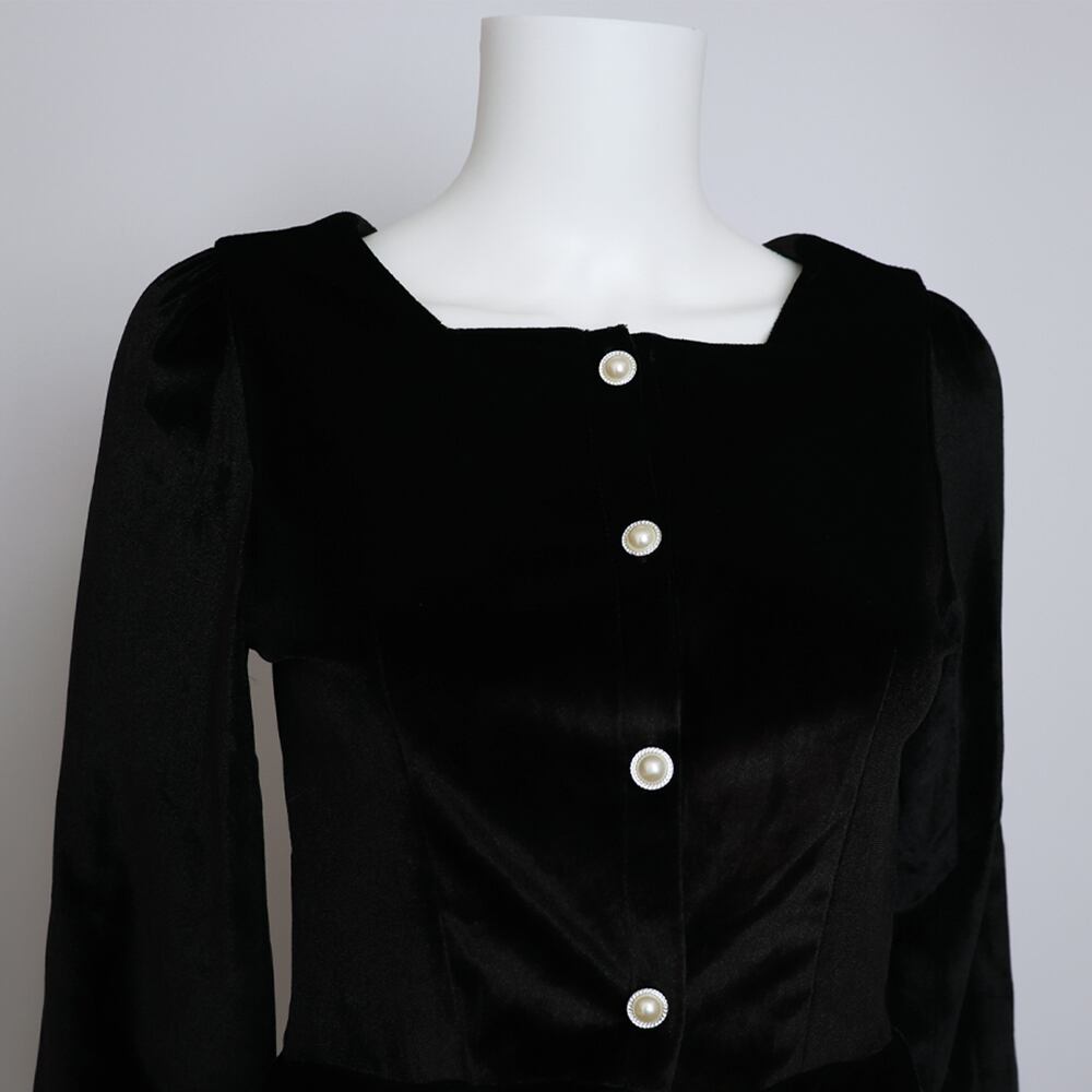 今年の新作、ベルベット素材の長袖ブラウスです。