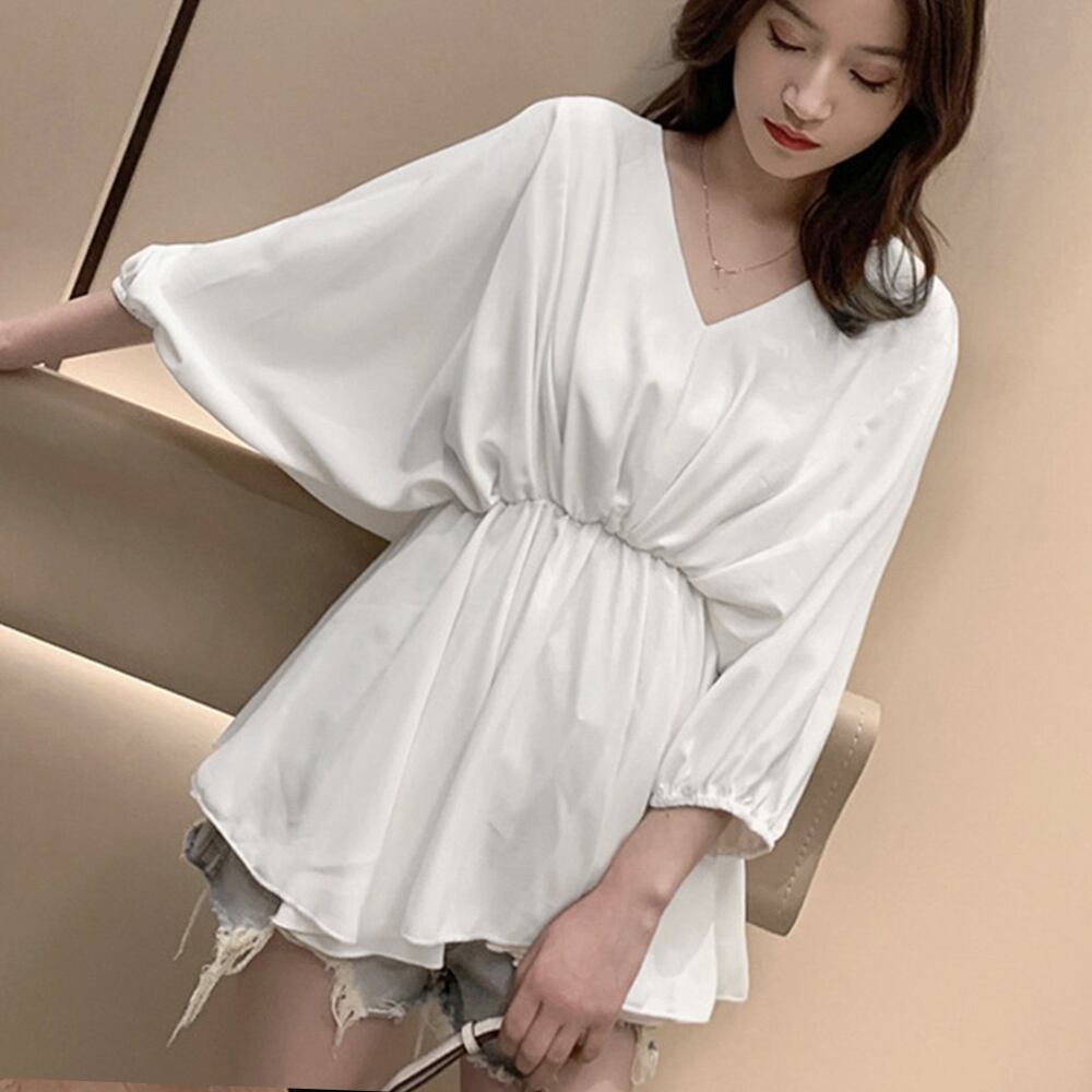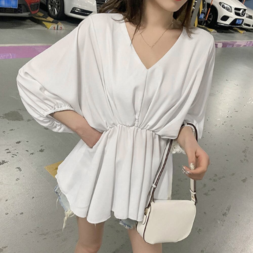 レディースブラウス ロング きれいめ ゆったり オフィスカジュアル 韓国風 トップス ウエストマーク 体型カバー ママ服