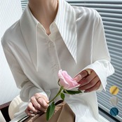 デカ襟トップス無地 白ブラウスオフィス 20代30代40代