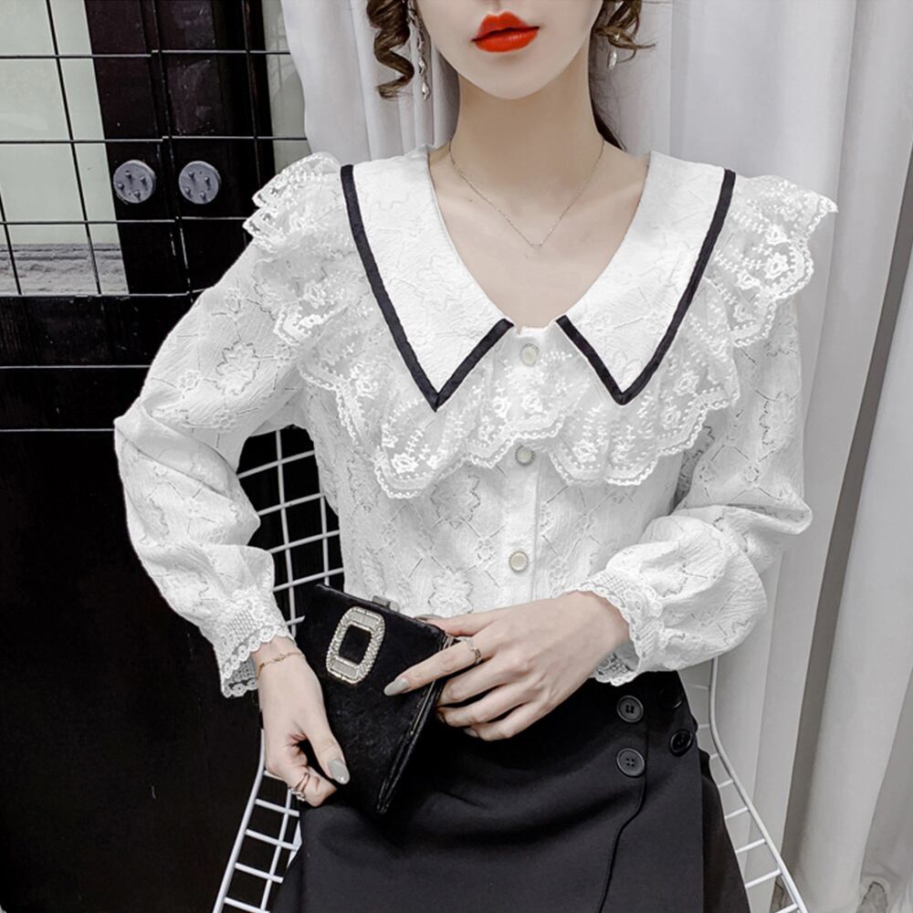 ブラウス ビッグセーラー襟 きれいめ 大人可愛い シャツ レディース オフィスカジュアル 前開きトップス おしゃれ