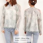上品 きれいめ春服 フラワーブラウス柄 シースルーチュール