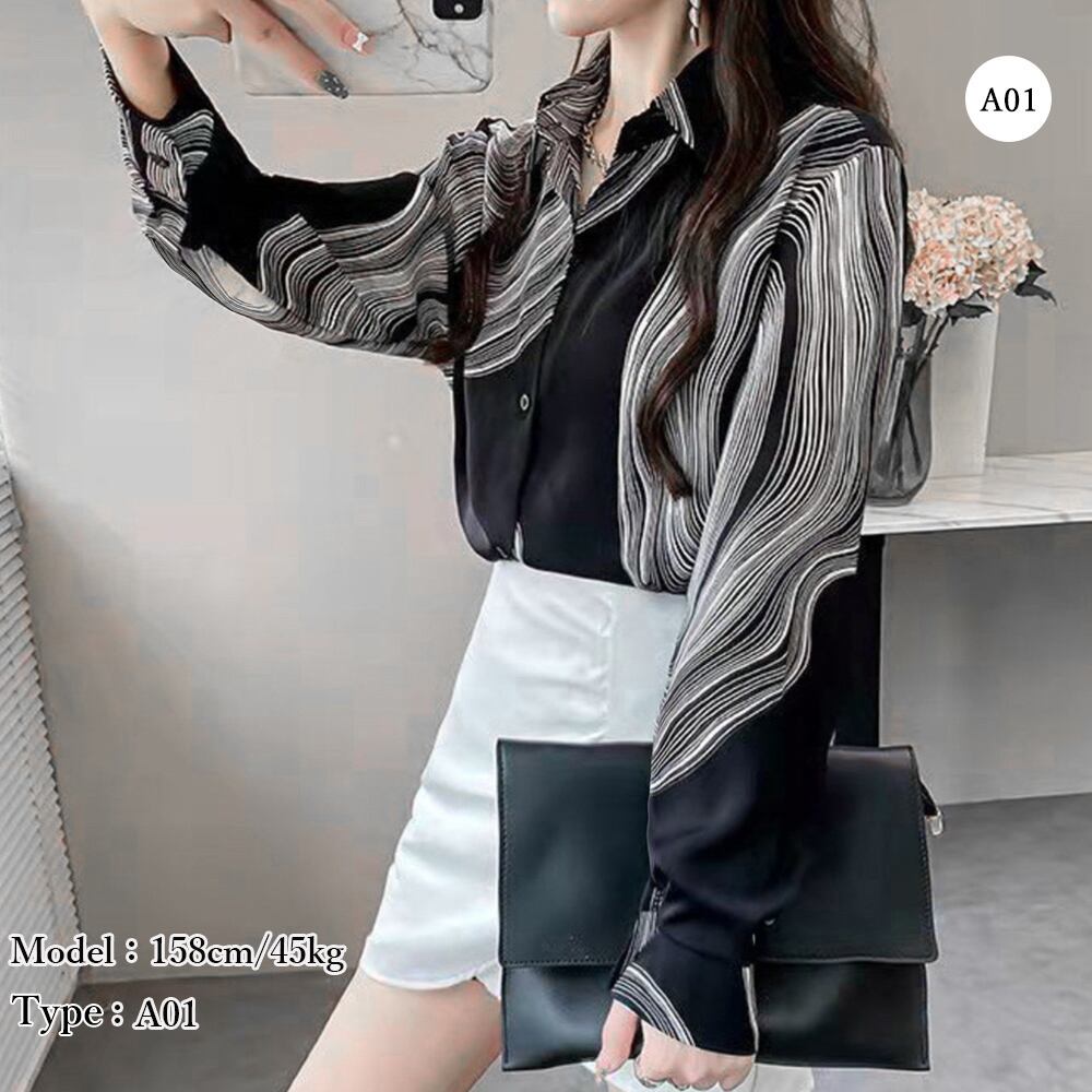 柄シャツブラウス 長袖 レディース春秋夏