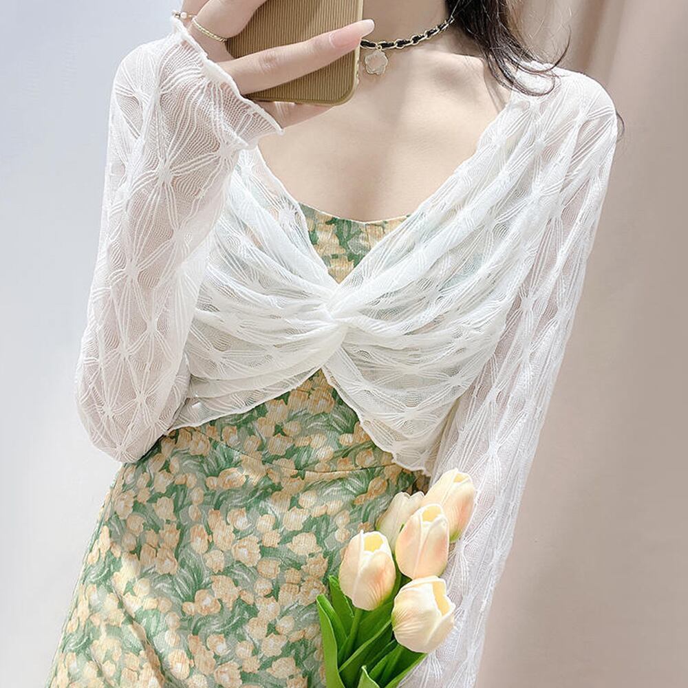 ショート丈トップス レディース 透け感 Vネック 重ね着 大人可愛い 韓国ファッション クロップド丈 鎖骨見せ セクシー