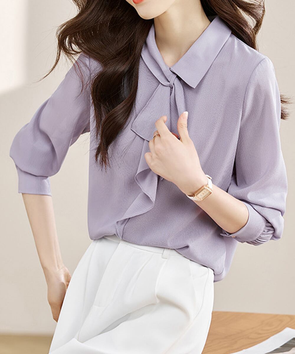 シャツブラウス春夏 タイネックトップス とろみシャツ韓国風