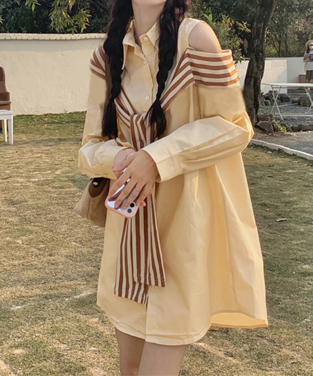 オフショルダーシャツ肩掛け付きシャツ春夏