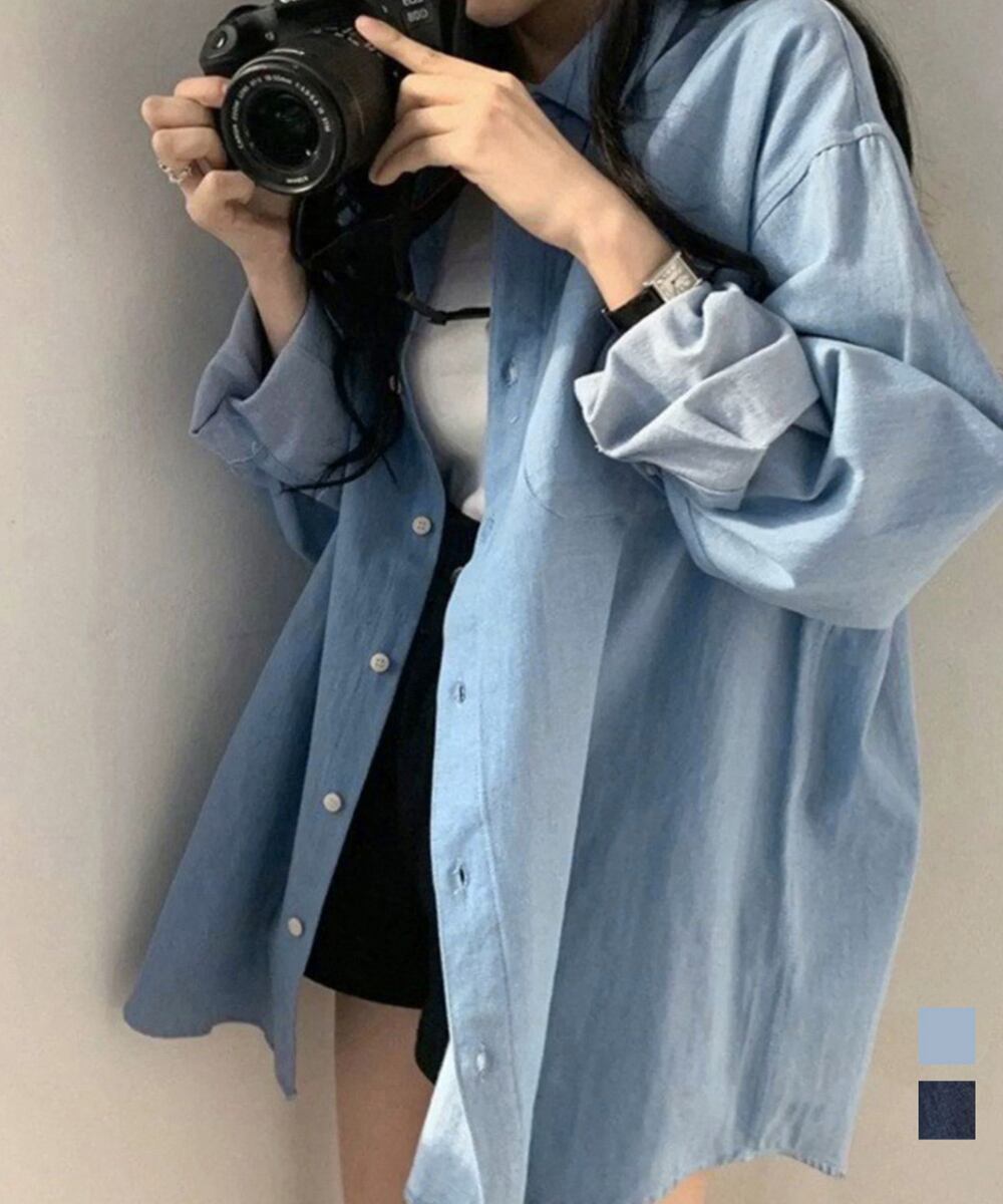 デニムBIGシャツ 羽織り 万能シャツ 韓国風コーデ襟付き