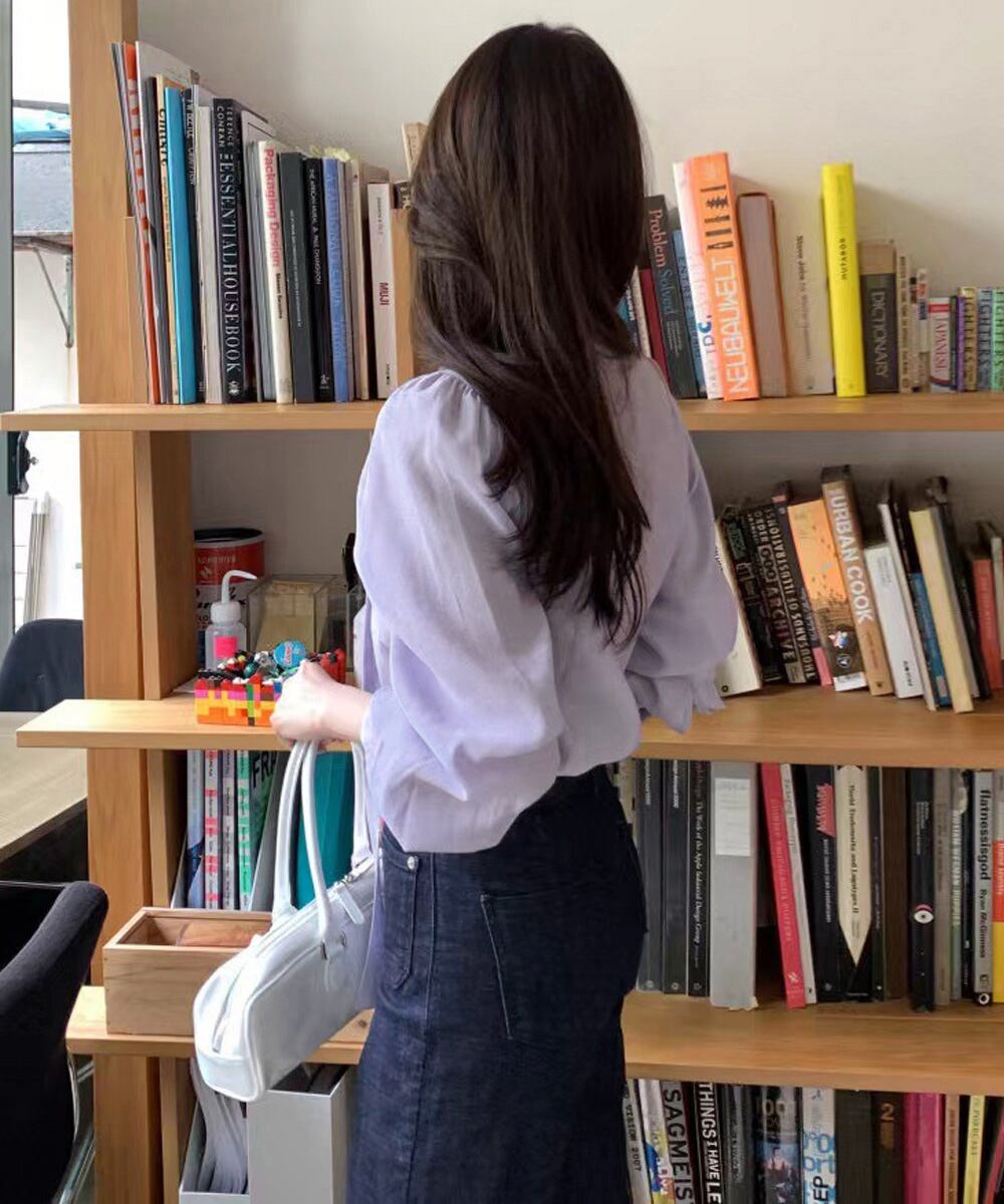 ハリ感と軽さを持ち合わせた薄手生地、ドレッシーな印象のタック袖ブラウス