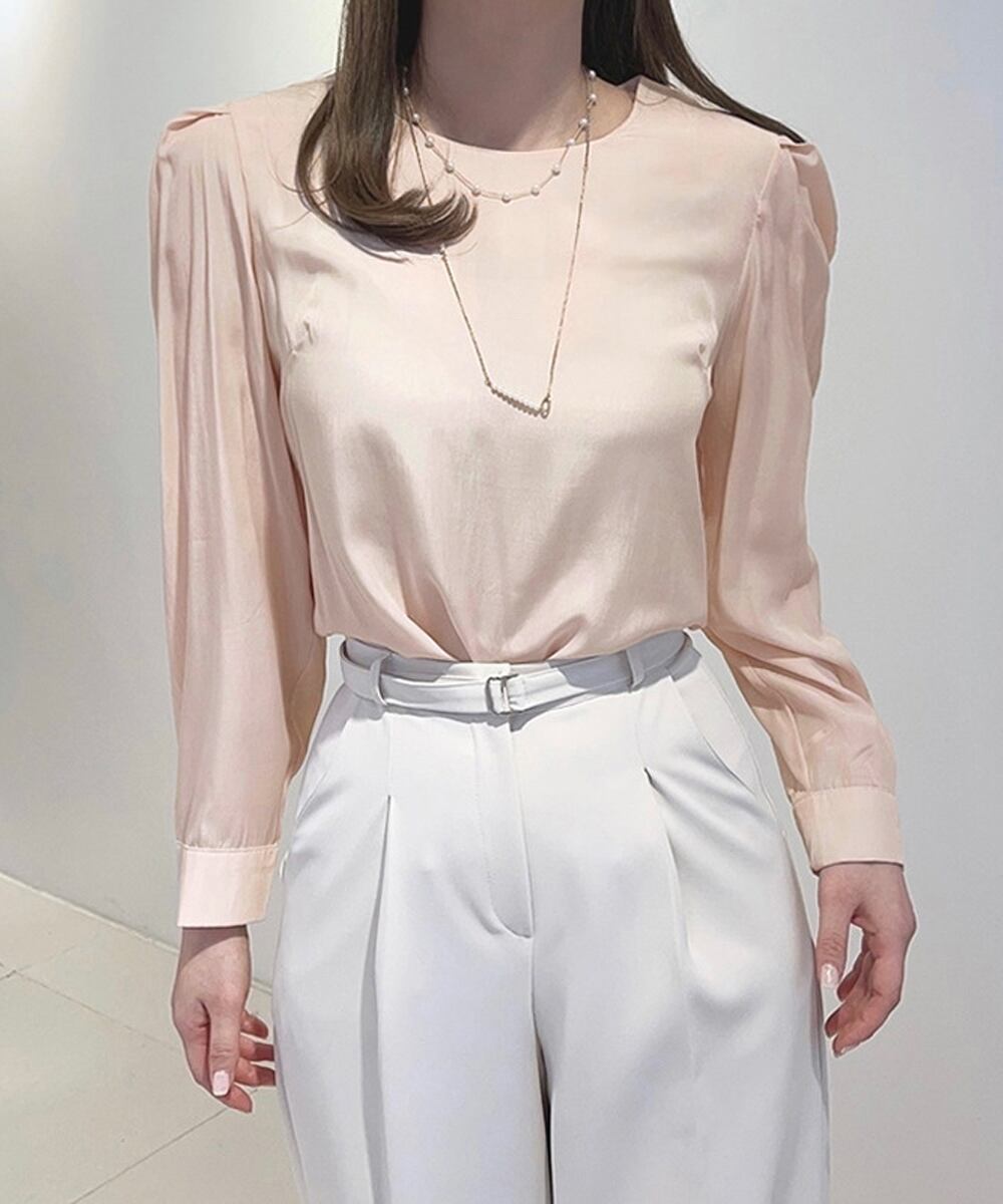 とろみ感のある素材が女性らしさを演出するパフスリーブブラウス