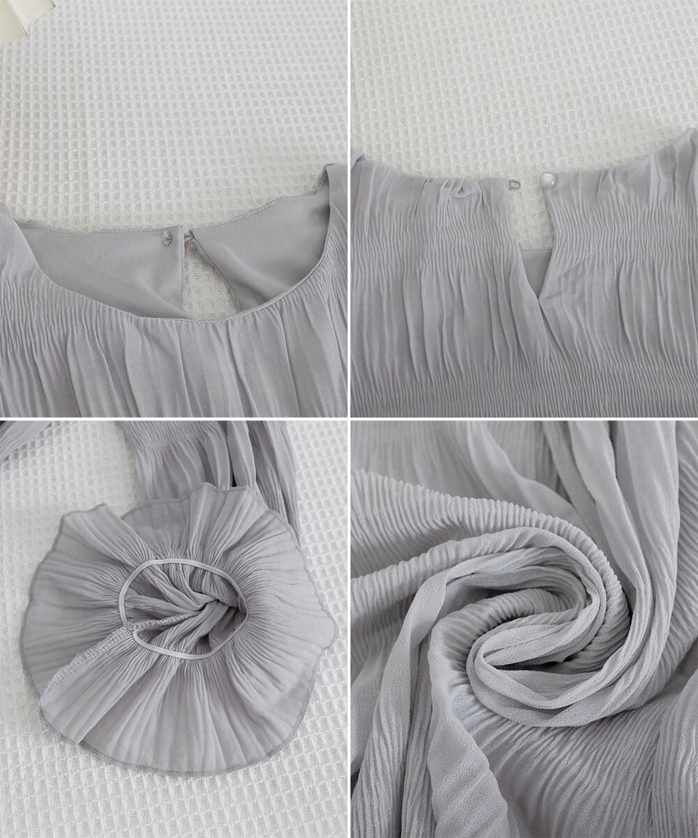 伸縮性:裏地あり/表地なし(プリーツの広がりにより楽に着られます)