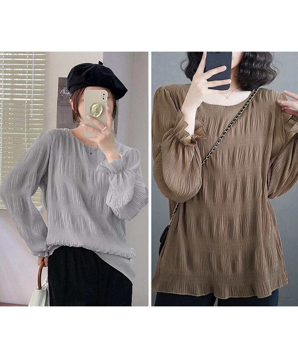 シャーリングブラウス 長袖トップス韓国風