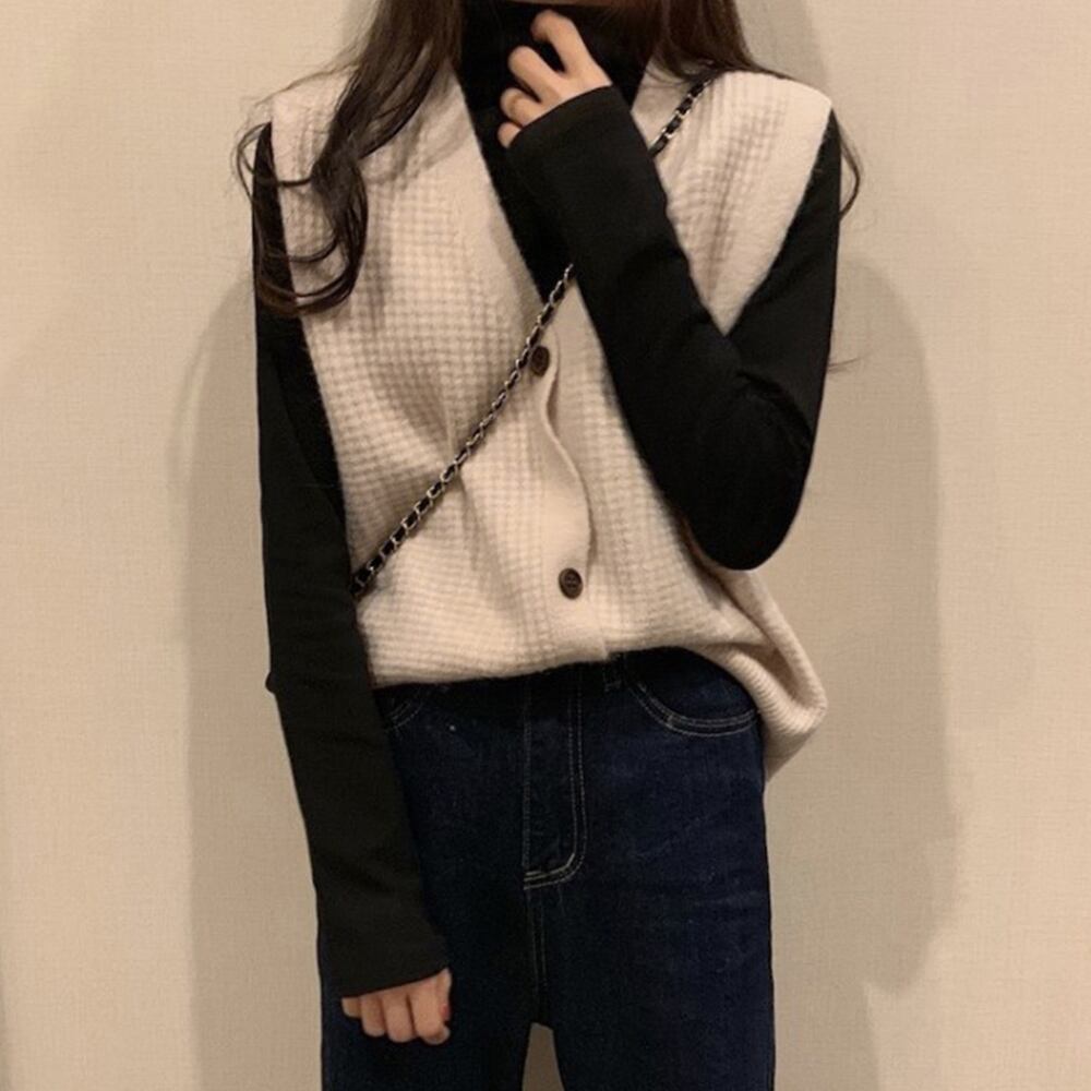 胸元のざっくりとしたデザインでコーデがグッとお洒落になるvネックニットベストです
