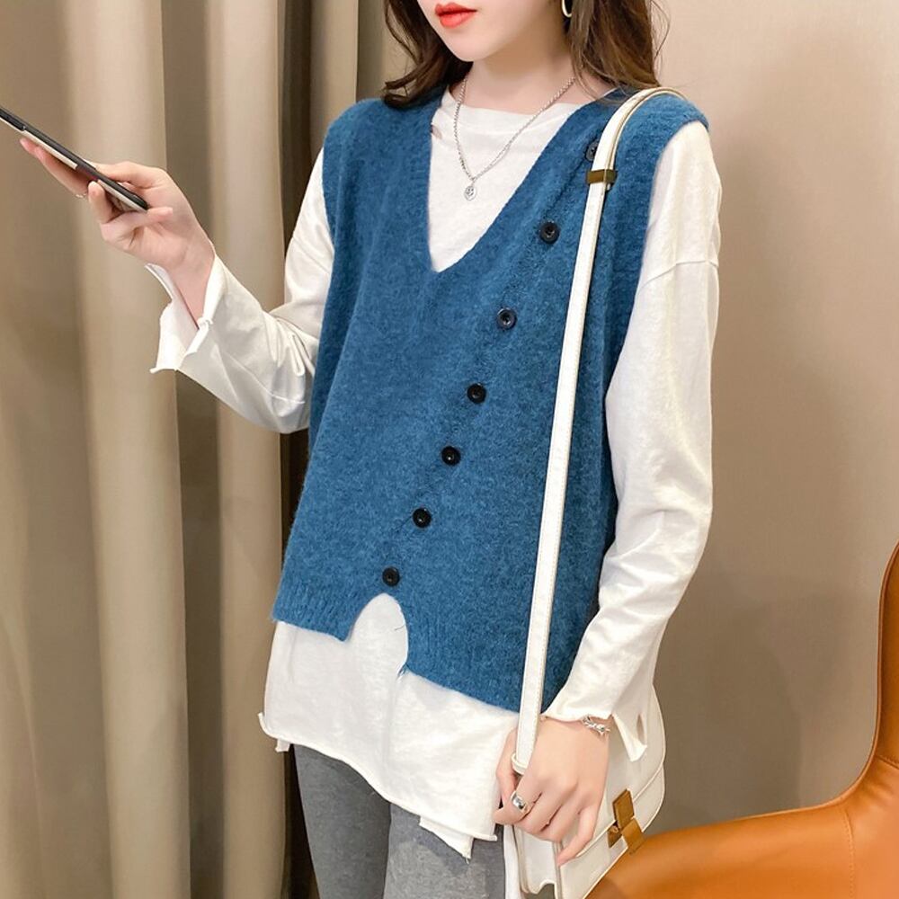 ニットベスト レディース ニットトップス ノースリーブ スリット入り