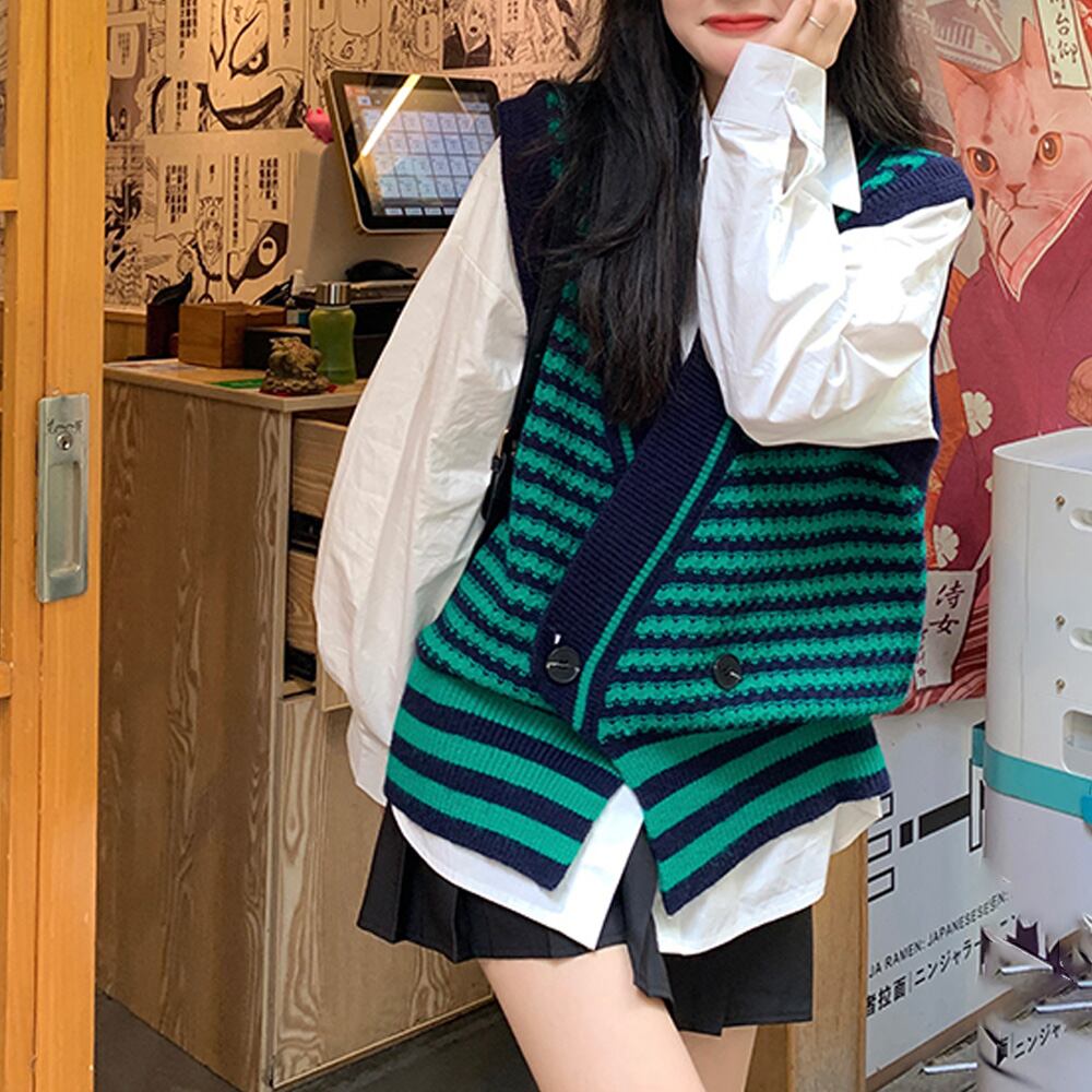 ニットジレ ボーダー柄 配色ベスト 秋冬