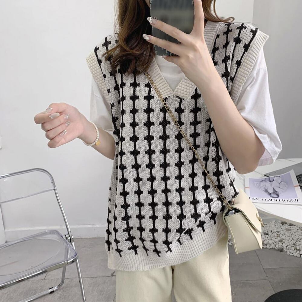 黒ベスト トレンド ノースリーブニット プルオーバー春秋冬