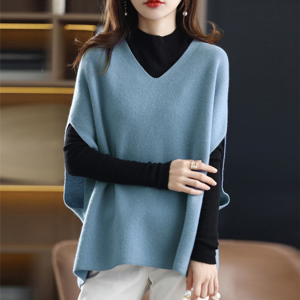 無地ニットチョッキ オフィスカジュアル 着やせニット春秋冬