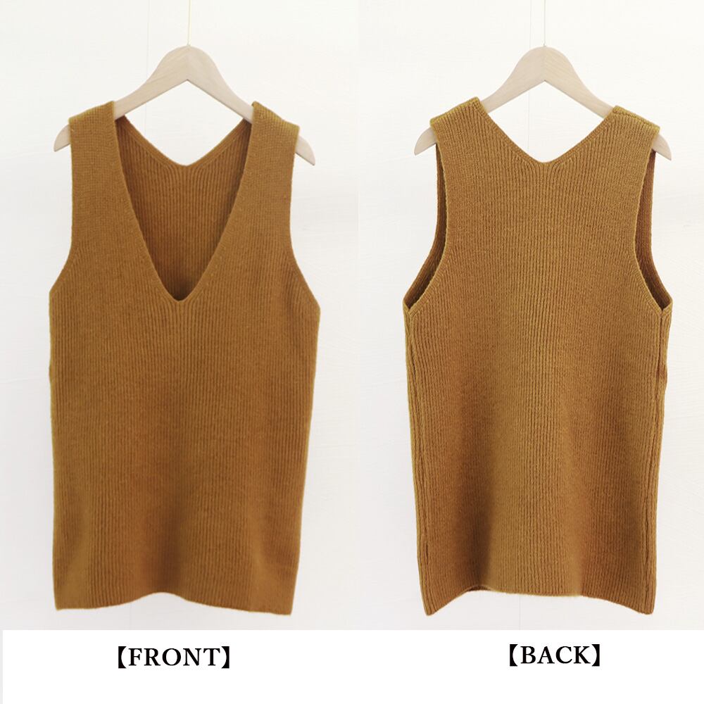 リブニットベスト レディース vネック