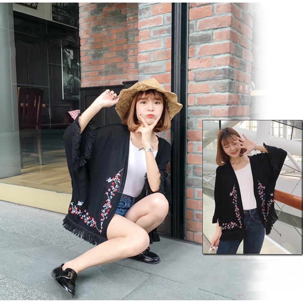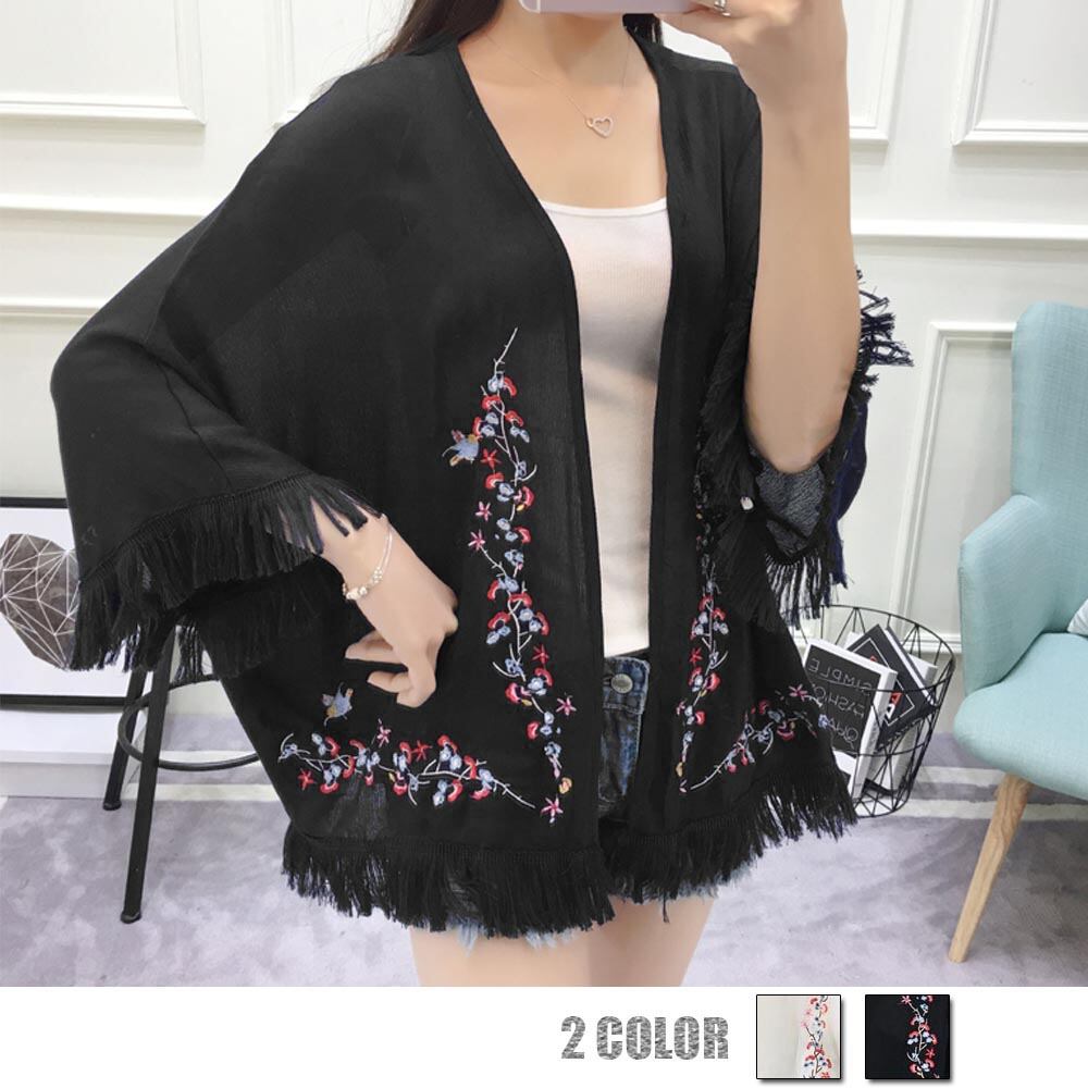 ショートカーディガン 刺繍入り ガウン レディース 羽織る タッセル ボヘミア